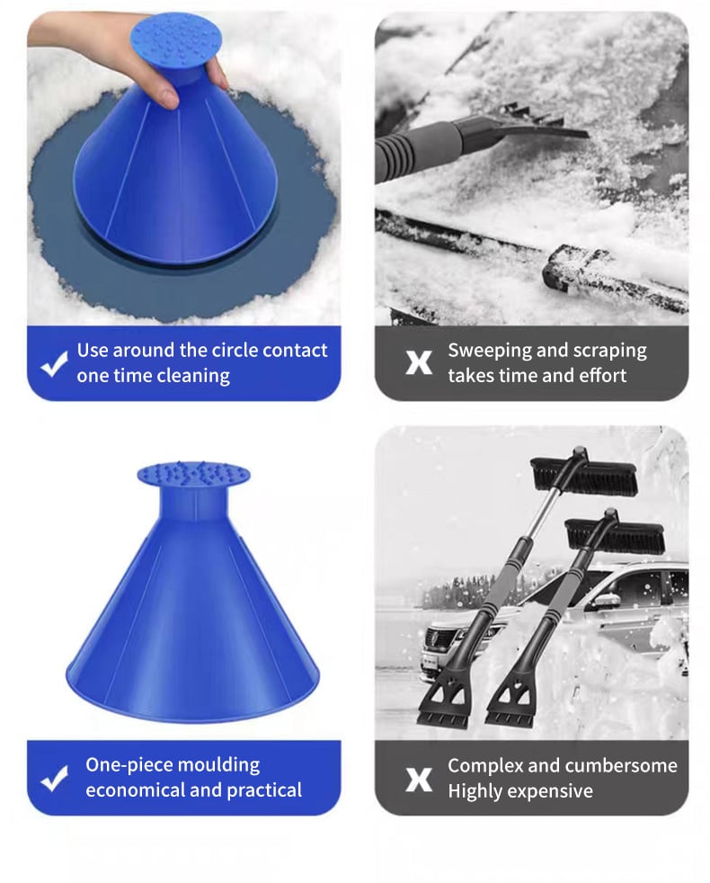 Cone-shaped Ice Scraper--Remove even the hardest,frozen frost from your car windows with ease,yet it won't scratch the glasses.
