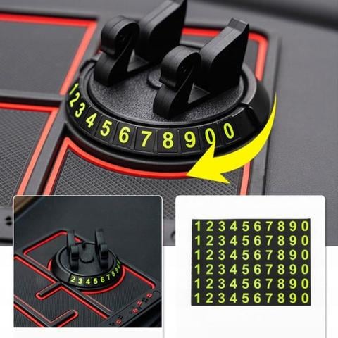 - 360-degree rotating phone holder: The mobile phone holder on the anti-skid mat can be rotated 360 degrees, whether it is horizontal or vertical screen, it can be adjusted at will to suit different viewing angles. Due to the rotating nature of the display stand, you can decide whether to hide your contact number. By using the included digital stickers (6 groups), even if you are outside your car window, you can still see your number clearly.