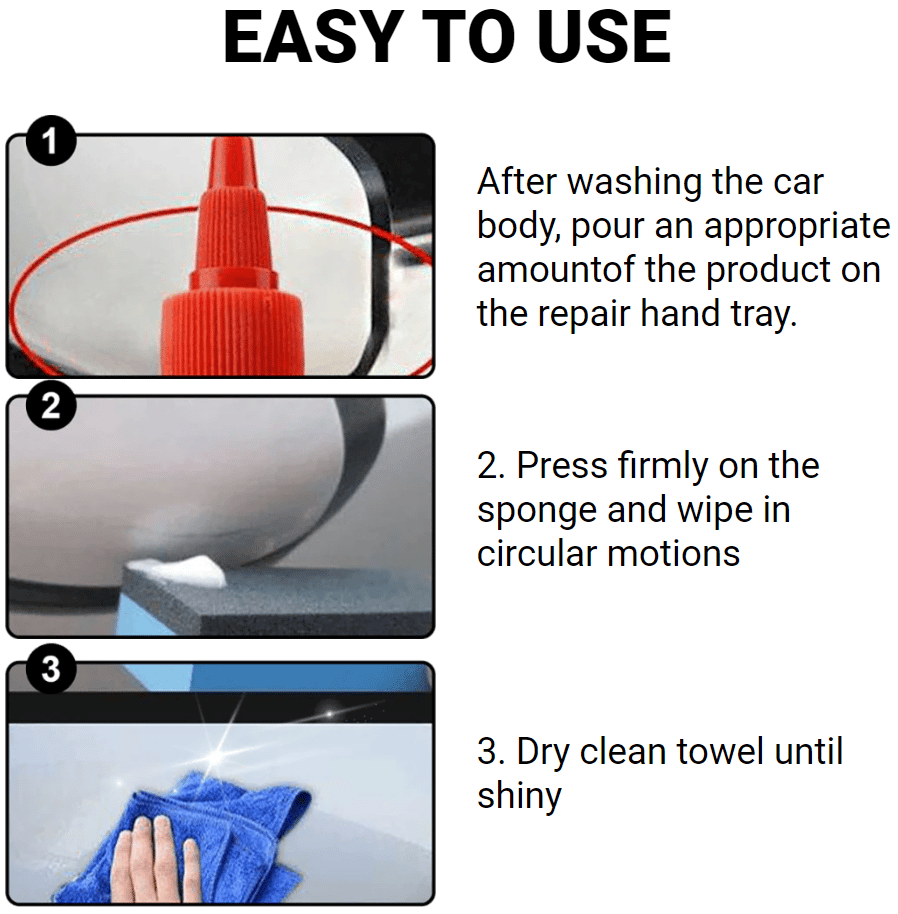 REMOVES SCRATCHES, SWIRLS AND OXIDATION INSTANTLY WITH NO MACHINE!Our ultimate repair kit is specially formulated for scratches all over the car body. You can safely use it on your car's scratches to restore it to its original luster!