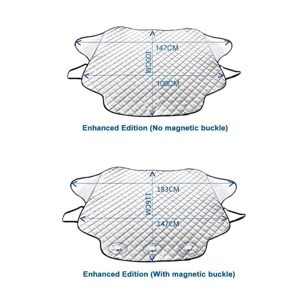 - STAYS IN PLACE: Secure with Side Flaps Design, Prevent from Falling Off. And when you come back? Simply pull off the cover and all the snow, frost, ice or leaves.Easy and Convenient to Use, No Tools Required for Installation. The material ofenhanced version is thicker, and magnetic buckles make it fixed better.